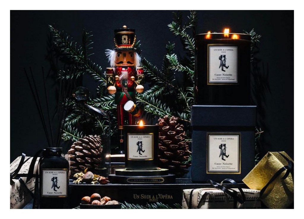 Un Soir à l’Opéra lève le rideau sur ce ballet magique en créant une bougie parfumée aux senteurs chaleureuses. Une note de pin sylvestre rappelle le sapin de Noël décorant le grand salon dans l’acte I, puis Emmanuel Philip apporte à cette bougie les parfums gourmands du deuxième acte, avec des notes régressives de cannelle, gingembre, ou encore muscade rappelant les épices à pain d’épices, puis celles des oranges décorées de clous de girofle, des fruits secs, du miel… Autant de références olfactives pour une expérience immersive au cœur du plus beau ballet de Noël !