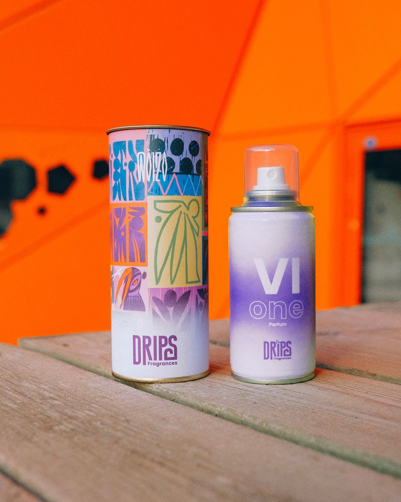 Chez Drips, chaque parfum est inspiré par une couleur. Il est également associé à sa vibe musicale et possède sa signature graphique.