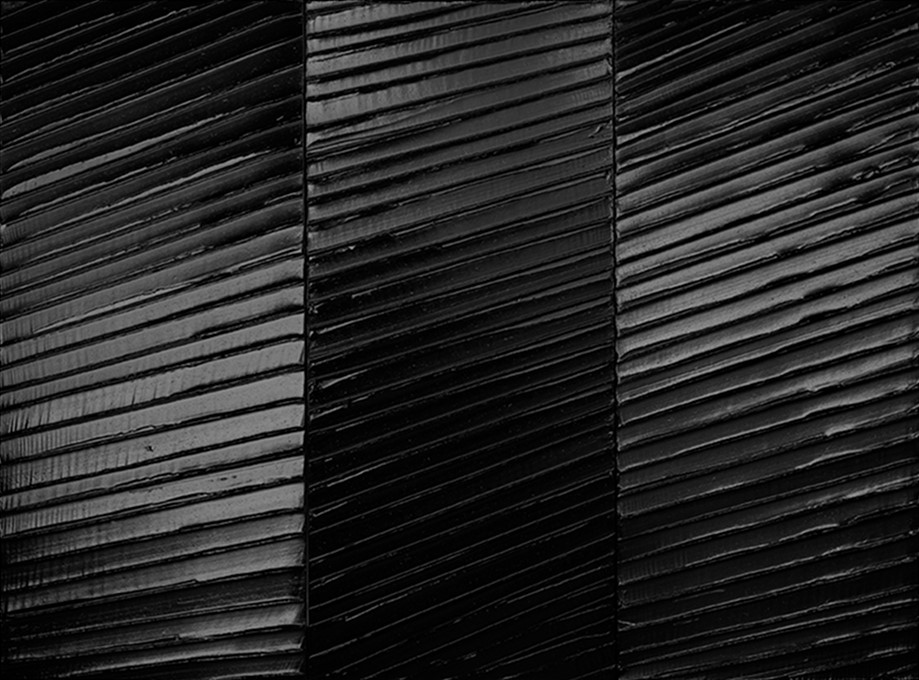 L’idée de la parfumeure était de travailler toutes les nuances de noir mais aussi la lumière : « Ce qui est intéressant dans l’œuvre de Soulage, c’est comment le noir est vecteur de lumière, comme il la renvoie, explique-t-elle. Cela a donné une note un peu inclassable, une sorte d’eau de cuir avec du poivre, du cade, différentes matières qui me faisaient penser à ces différentes tonalités de noir, mat ou brillant. Un accord encre illustre justement ce coté brillant, et un néroli, en filigrane dans le parfum, apporte cette lumière. »