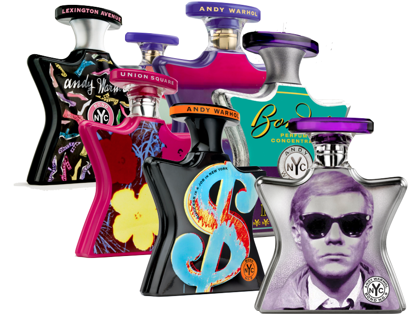 De 2007 à 2011, la marque new yorkaise Bond N°9 lance plusieurs fragrances inspirées par l’univers de l’artiste et par la ville de New York : Andy Warhol Silver Factory, créé par Aurélien Guichard, Andy Warhol Lexington Avenue par Claude Dir, Andy Warhol Union Square par Stephen Nilsen, ou encore Andy Warhol Success is a Job in New York, Andy Warhol Montauk, Andy Warhol Brooklyn, Andy Warhol.