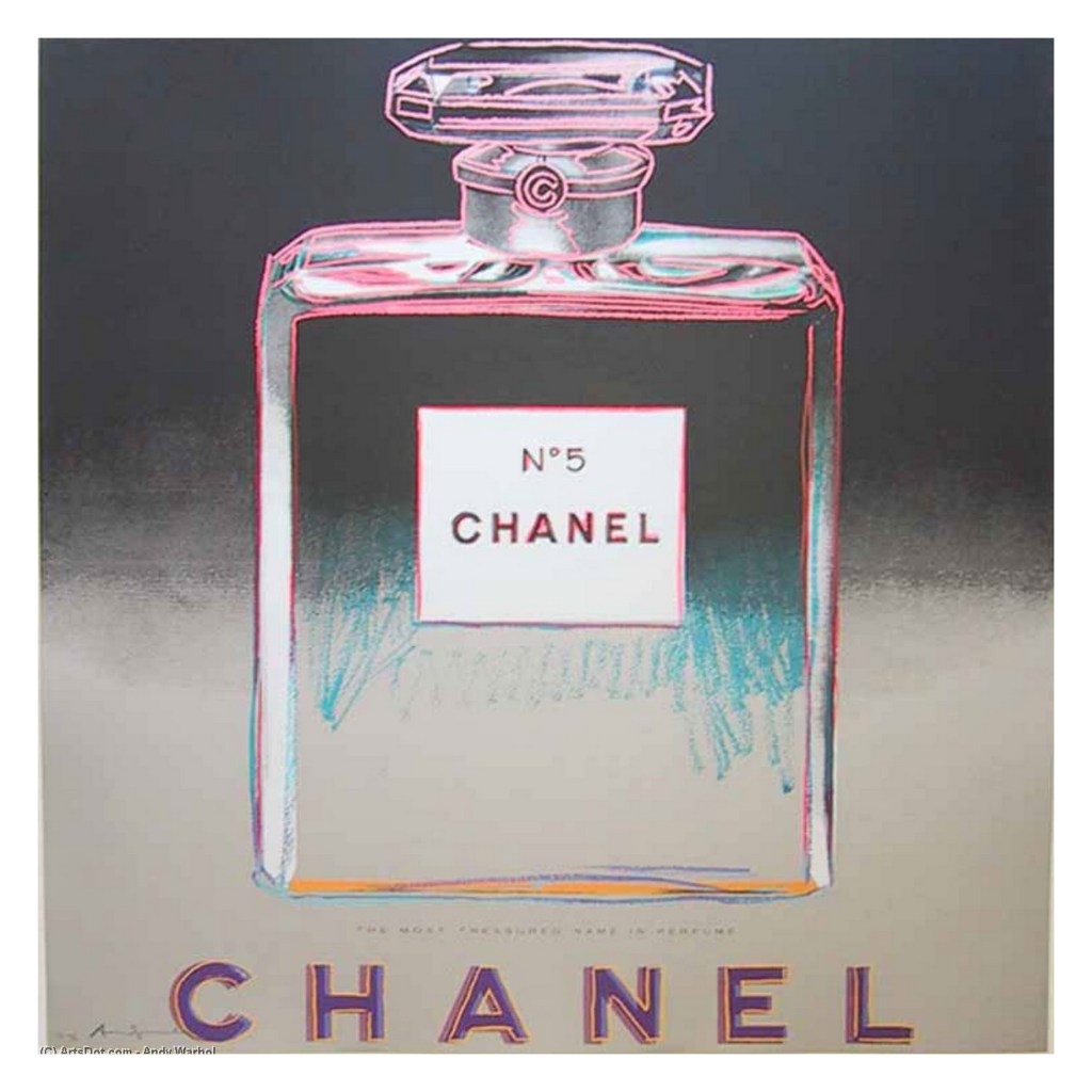 La plus connue de toutes est sans doute la sérigraphie de portraits de Marilyn Monroe. Il réutilise cette méthode en 1985 en créant un œuvre composée de six bouteilles de parfum Chanel N°5. Si l’étiquette du flacon est une constante de cette série, chaque flacon reproduit n’est jamais tout à fait le même, que ce soit en terme de couleurs, de saturation ou de détails du dessin.