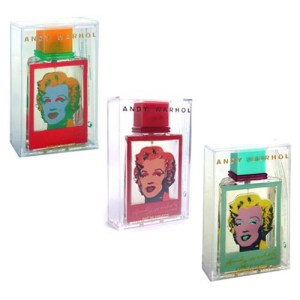 Ainsi en 1999, le groupe Cofinluxe lance le parfum Andy Warhol, parfum féminin créé par Dorothée Piot. La fragrance est un floral fruité et le packaging reprend une œuvre très connue de la série Flowers réalisée par Warhol d’après une photographie de Patricia Caulfield. Sorti la même année, son pendant masculin est un aromatique dont le packaging s’inspire cette fois de la série Dollars, détournement d’un symbole représentant à la fois la civilisation américaine et la société de consommation. Toujours sous la marque Andy Warhol, le triptyque Marilyn Rouge, Bleu, et Rose créé par Michel Almairac, sort en 2001 puis le duo Pop pour femme et Pop pour homme en 2005.