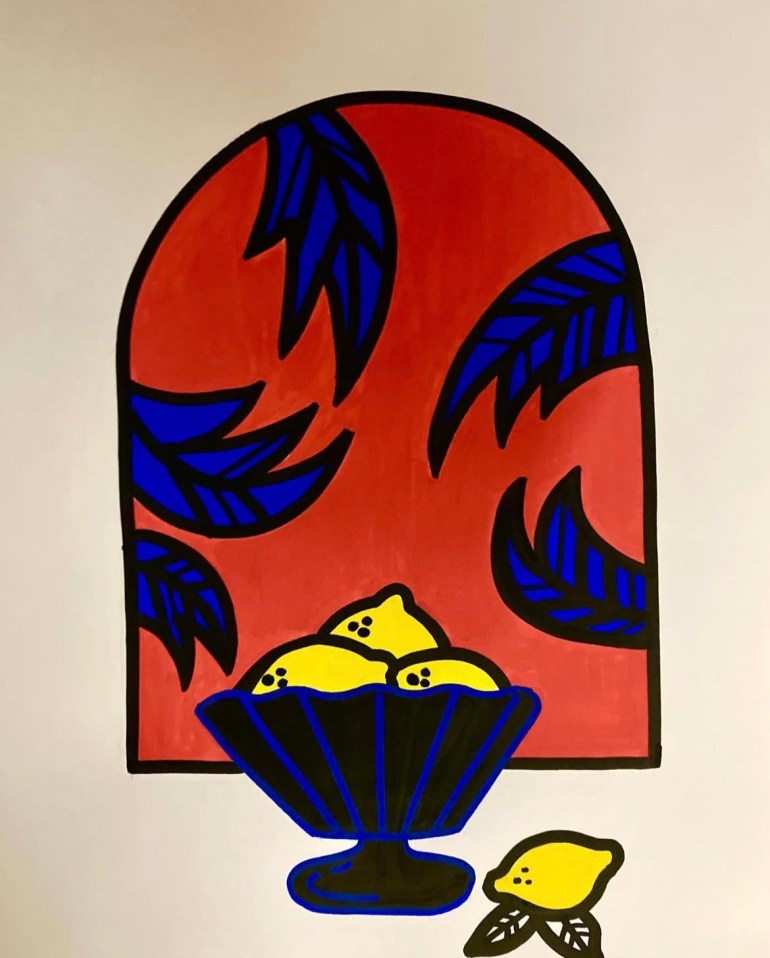 Aujourd’hui, son activité principale réside donc dans la peinture. Elle se divise en quatre catégories principales que sont l’identité graphique (toujours avec une dimension artistique puisque l’idée part du dessin et non d’un logiciel), la fresque, qui représente aujourd’hui 40% de son travail (peinture ou pastel, murs ou plafonds, pour des hôtels, des restaurants, des collectivités ou des particuliers), la peinture sur toile, et la céramique. Son travail créatif a également été mis en lumière via des collaborations artistiques avec des marques telles que La Roche-Posay, des designer tels que Sophie Ferjani ou des évènements tels que le Refugee Food Festival à Nice.